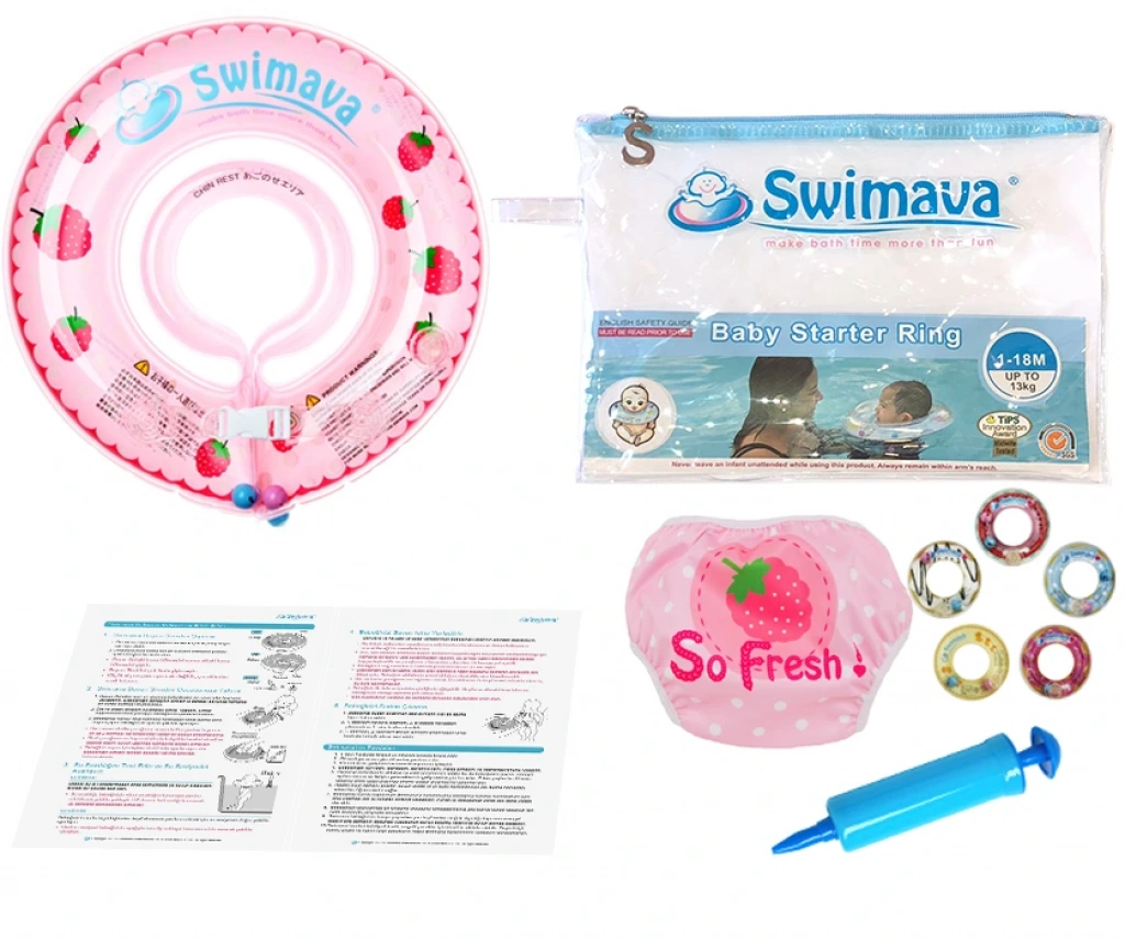 İçindekiler :Swimava boyun simidi, mayo bebek bezi, kullanım kılavuzu, taşıma çantası, pompa, 1 adet Mini Ring (Banyo Oyuncağı)