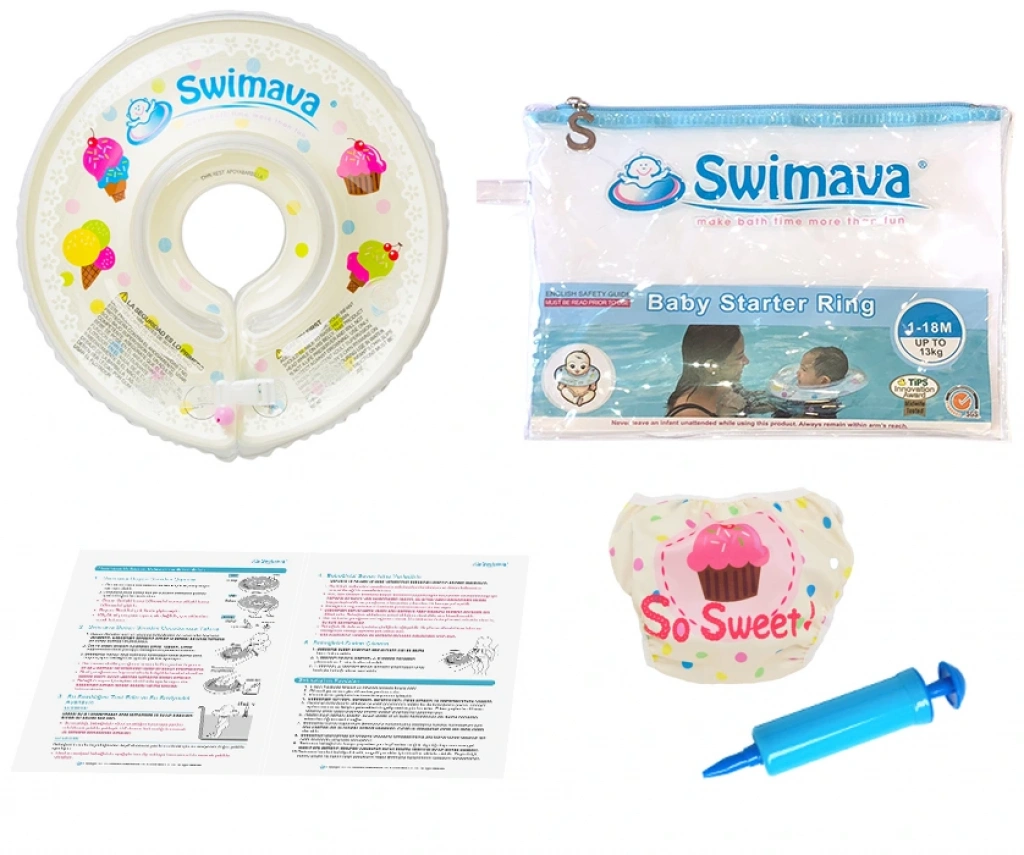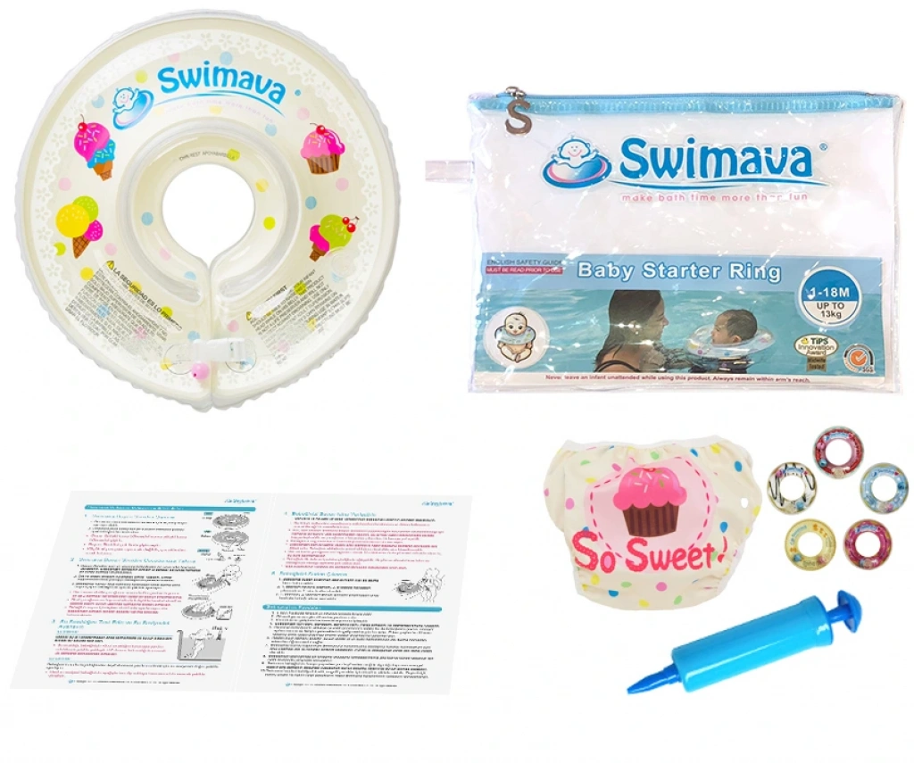 İçindekiler :Swimava boyun simidi, mayo bebek bezi, kullanım kılavuzu, taşıma çantası, pompa, 1 adet Mini Ring (Banyo Oyuncağı)