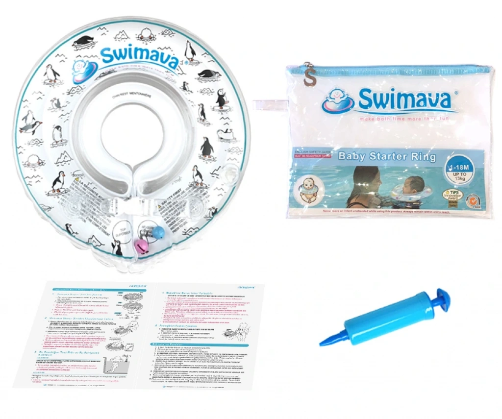 İçindekiler :Swimava boyun simidi, kullanım kılavuzu, taşıma çantası ve pompa.