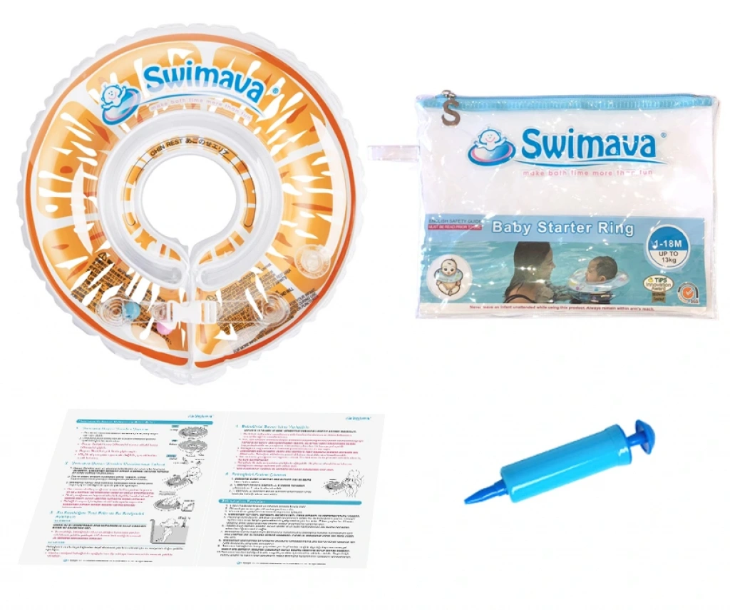 İçindekiler :Swimava boyun simidi, kullanım kılavuzu, taşıma çantası ve pompa.
