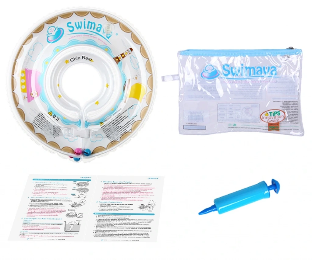 İçindekiler :Swimava boyun simidi, kullanım kılavuzu, taşıma çantası ve pompa.
