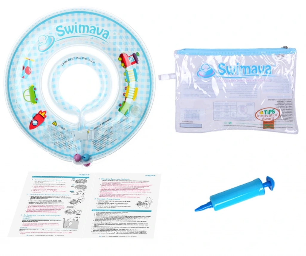 İçindekiler :Swimava boyun simidi, kullanım kılavuzu, taşıma çantası ve pompa.